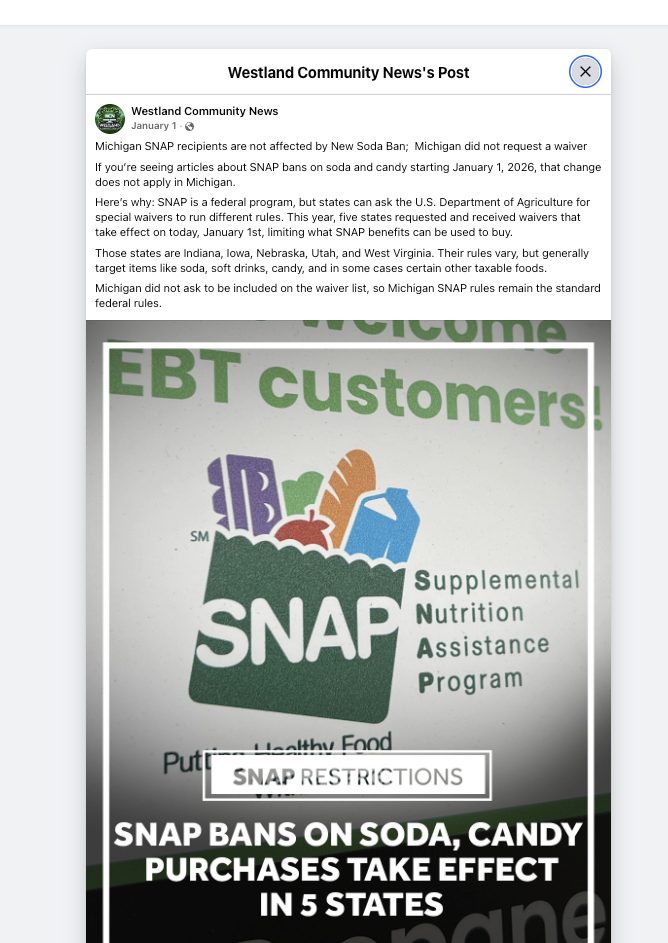 It is only 18 states. Michigan is one of the fattest states with a huge amount of the fatties on food stamps. Don’t worry. They can still buy pop and junk.