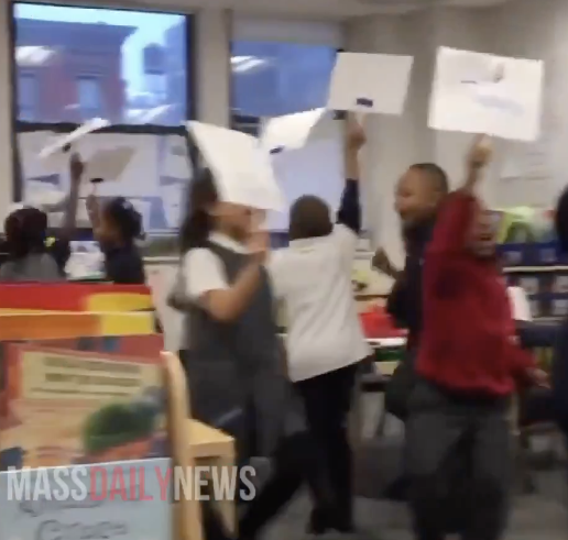@MassDailyNews posted this video on X showing young students inside a classroom chanting “No Donald Trump” while holding protest signs. They are repeating a political slogan taught to them by adults. Children do not come up with chants and protest signs like this on their own. This is not education — it is political indoctrination