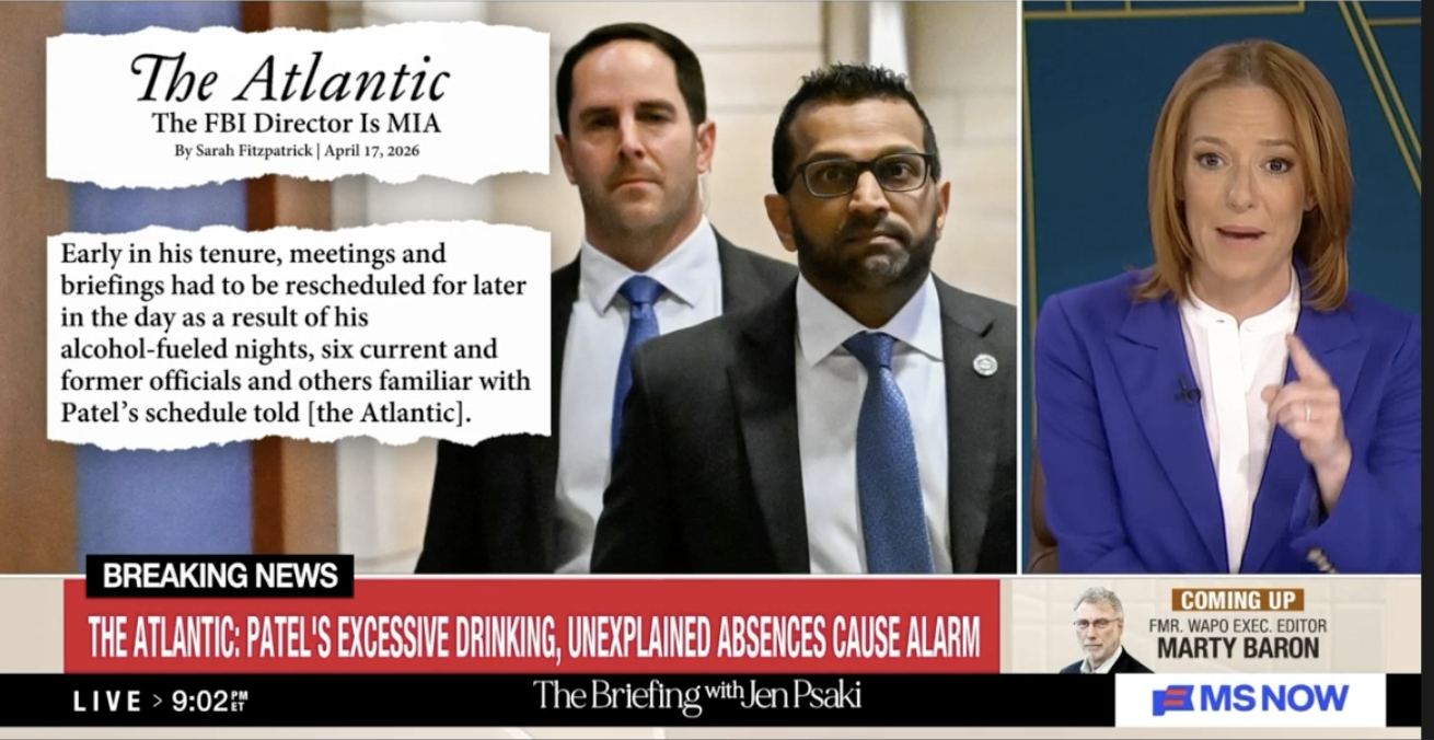 On The Briefing with Jen Psaki, on April 17, 2026, Jen Psaki asked her guest Sarah Fitzpatrick of The Atlantic this question: “…What more have you heard about the extent of his drinking habits and how it seems to be affecting his ability to serve as FBI director?” Fitzpatrick responded: “I think the key point […]