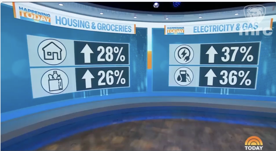 In an MRC video titled Networks Go to the Mat Against Trump Following Economic Speech (Pt. 1), a host on NBC’s Today claimed that “electricity and gas [are] up almost 40%.” But that’s simply not true — especially when it comes to gas. If you look at the bottom left of the video, it clearly