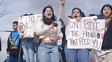 The sign says, “DON’T BITE THE HANDS THAT FEED YOU,” with a Mexican flag on it. The message is that Americans depend on Mexican illegal immigrants for food and labor, so immigration laws shouldn’t apply to them. But that argument is false. The United States is fully capable of feeding itself and staffing its workforce without Mexicans and illegal immigration. What’s actually happening is that government policy — driven largely by Democrats — encourages mass foreign labor, both legal and illegal, to undercut wages and replace American workers. It is the migrants who depend on the U.S. economy, not the other way around. Enforcing immigration law does not mean rejecting workers; it means rejecting a system that exploits foreign labor while pushing Americans out of their own job market.