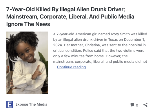 And never forget this precious 7-year-old girl below named Ivory, who was killed by an illegal alien. She never saw her eighth birthday. Democrats, the media, and BLM ignored her death too.
