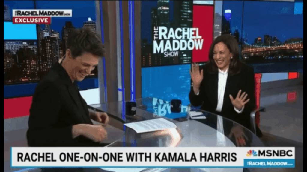 Rachel Maddow and Kamala Harris opened their sit-down interview giggling like two schoolgirls, but the conversation quickly turned into something far more revealing. In the same breath that Harris smeared President Trump as a “tyrant” and a “communist dictator,” she also mocked America’s top business leaders as “feckless.” The irony was thick.