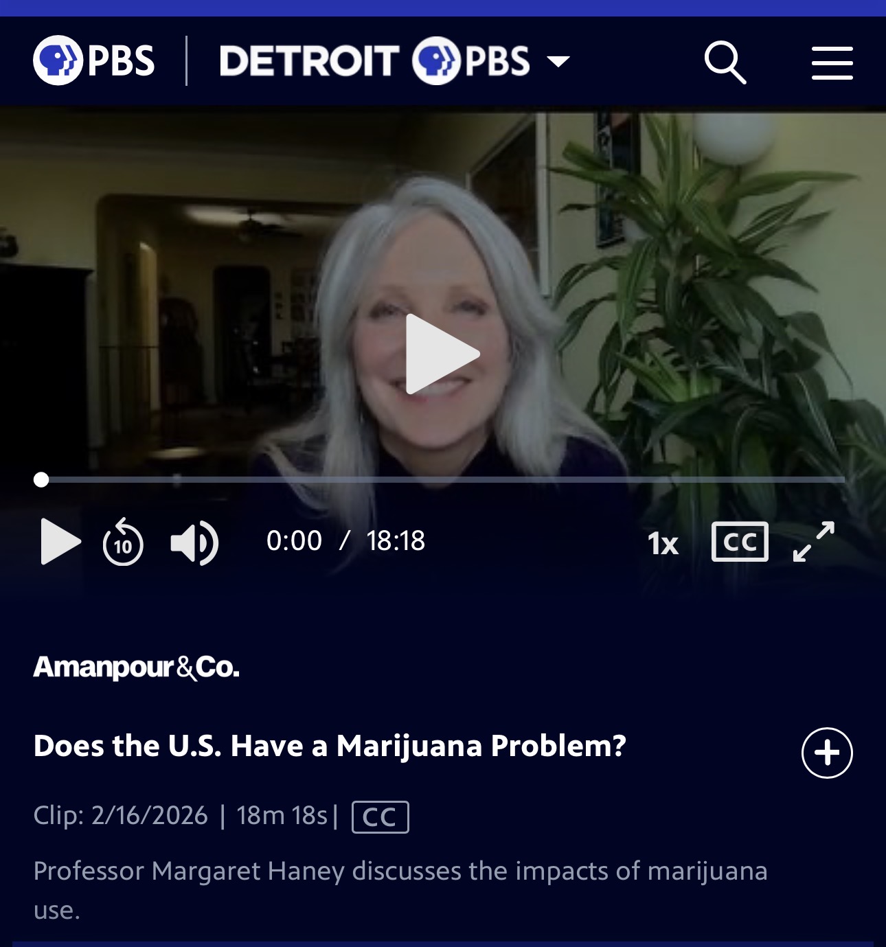 Viewers got recycled content packaged as “NEW” … including this 18-minute segment featuring Columbia neurobiologist Dr. Margaret Haney. She has spent decades researching marijuana’s effects on the brain, including controlled human laboratory studies with cannabis users, as well as extensive preclinical work with rats and other rodents on reinforcement, dependence, and withdrawal.