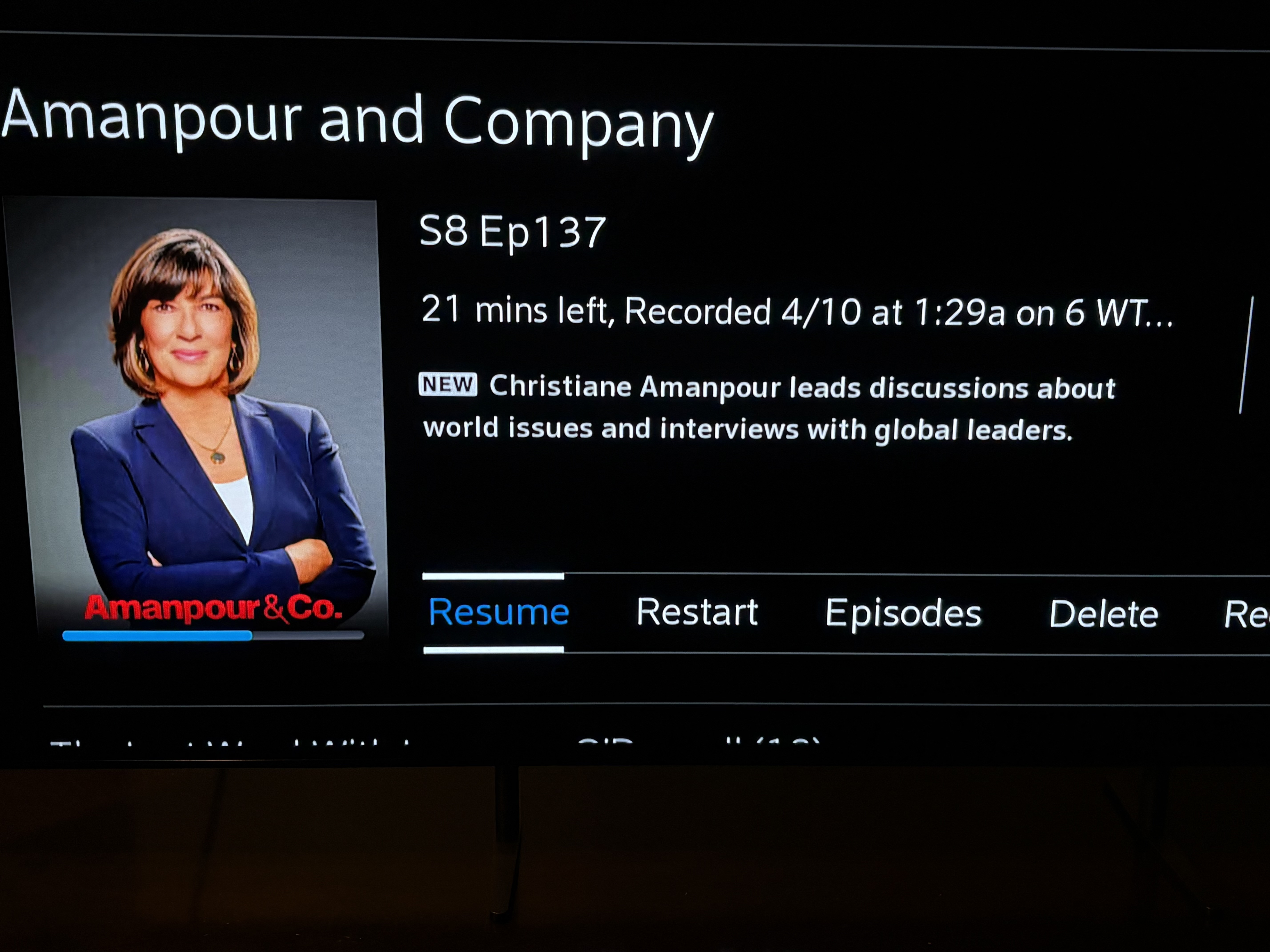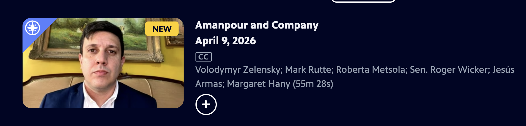 On April 9 and 10, 2026, Xfinity and PBS listed a “NEW” episode of Amanpour & Company. In reality, the entire hour was a rerun from almost two months ago.