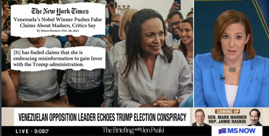 Psaki labels these claims “debunked” and accuses Machado of embracing “misinformation,” even though María Corina Machado, like President Trump, had the election stolen from her too. This is a common tactic in the media — when right-wing individuals who have been cheated out of an election speak out to expose the electoral manipulation and defend election integrity, their concerns are dismissed as conspiracy theories and misinformation. The corporate, liberal, and public media in the U.S. and around the world protect the leftist cheaters by ignoring and dismissing voter fraud instead of taking the time to investigate and report on it.