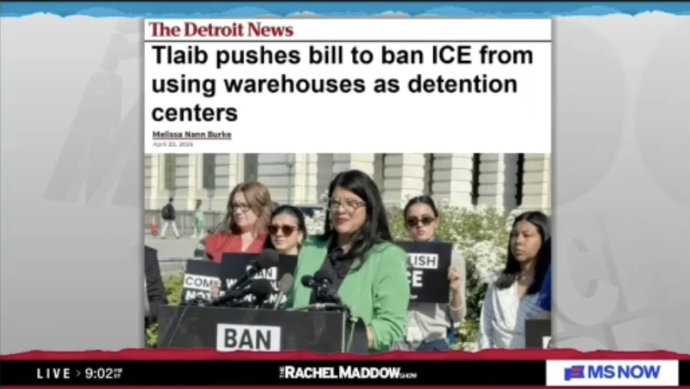 Maddow also said that Democratic Congresswoman Rashida Tlaib has introduced federal legislation to block the Trump administration from converting warehouses into detention facilities anywhere in the country. She denounced the Trump administration’s plans for a similar facility in Surprise, Arizona, where the Democratic Attorney General has filed a federal lawsuit to stop it.