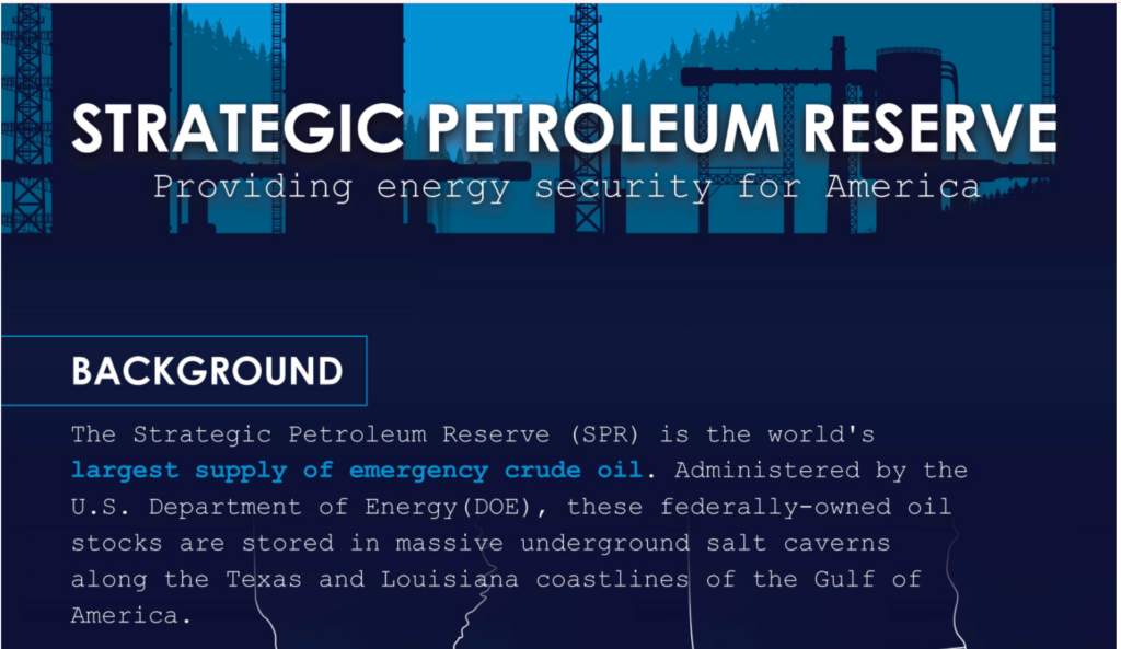 The Strategic Petroleum Reserve (SPR), the world’s largest supply of emergency crude oil was established primarily to reduce the impact of disruptions in supplies of petroleum products and to carry out obligations of the United States under the international energy program. The federally-owned oil stocks are stored in huge underground salt caverns at four sites along the coastline of the Gulf of America. The sheer size of the SPR (authorized storage capacity of 714 million barrels) makes it a significant deterrent to oil import cutoffs and a key tool in foreign policy.