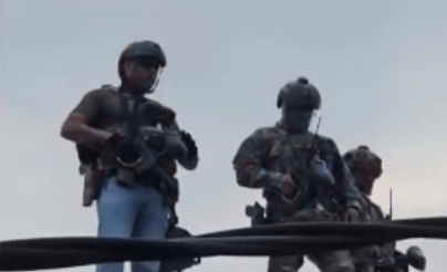 The idea that he could hear ICE agents “laughing from the roof” amid chants, screaming, music, megaphones, and the chaos defies common sense. The men stationed on the roof were wearing protective shields and face coverings — their mouths weren’t even visible, let alone audible over the noise below.